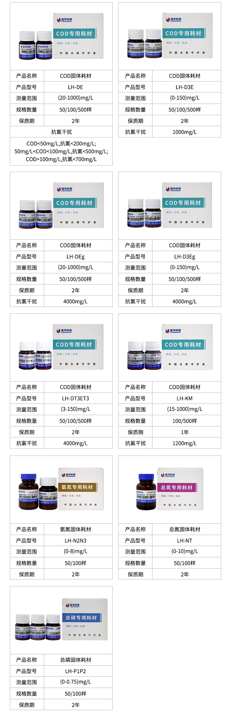 抗氯干扰:COD<50mg/L,抗氯<200mg/L;50mg/L<COD<100mg/L,抗氯<500mg/L;COD>100mg/L,抗氯<700mg/L